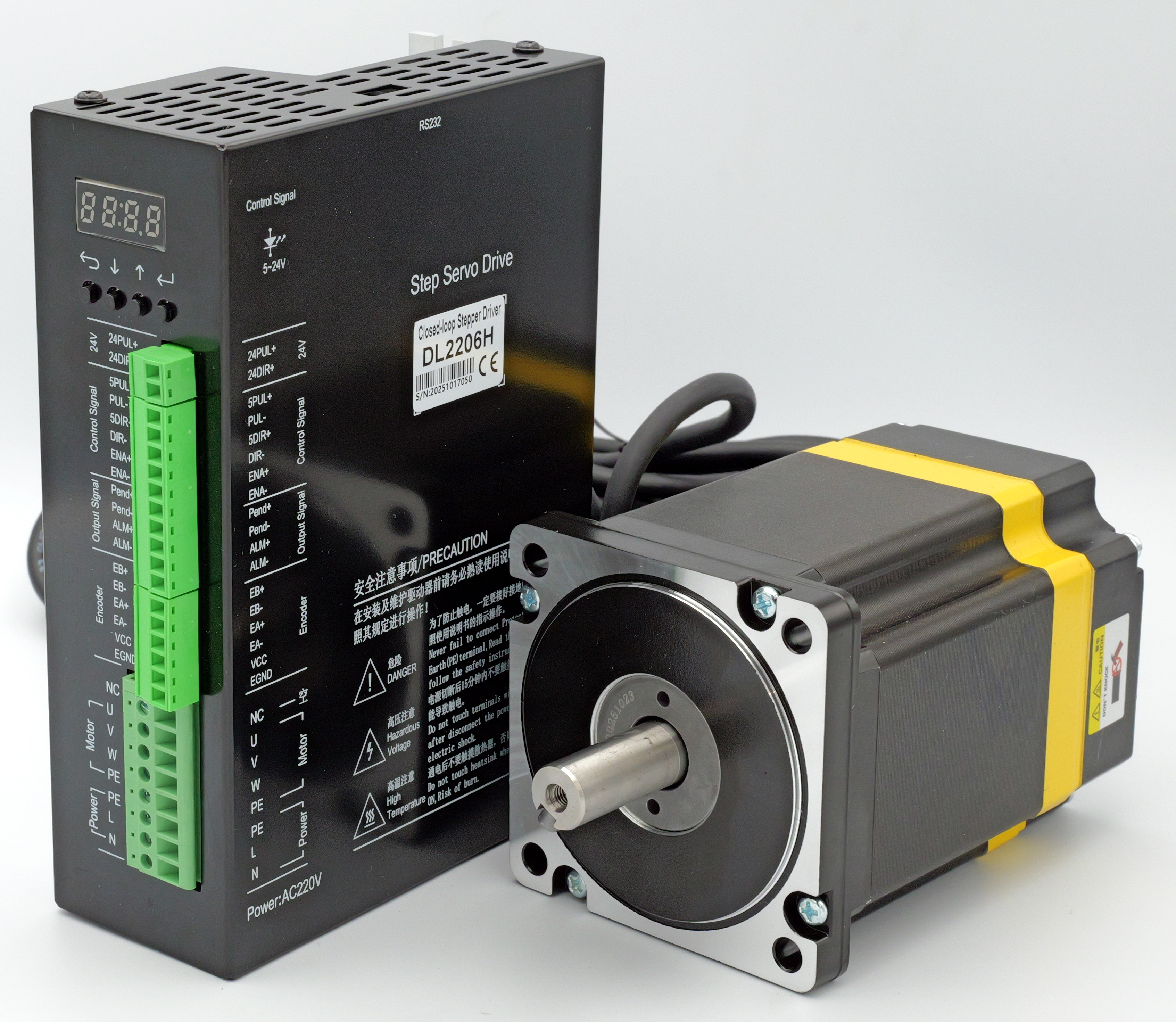 DL2206H to nowoczesny cyfrowy sterownik typu step-servo, zaprojektowany do precyzycznego sterowania hybrydowymi silnikami krokowymi 3-fazowymi serii 110 oraz 130. Wykorzystuje zaawansowaną technologię sterowania wektorowego, co zapewnia wysoką dynamikę, stabilność pracy oraz płynny ruch nawet przy niskich prędkościach.