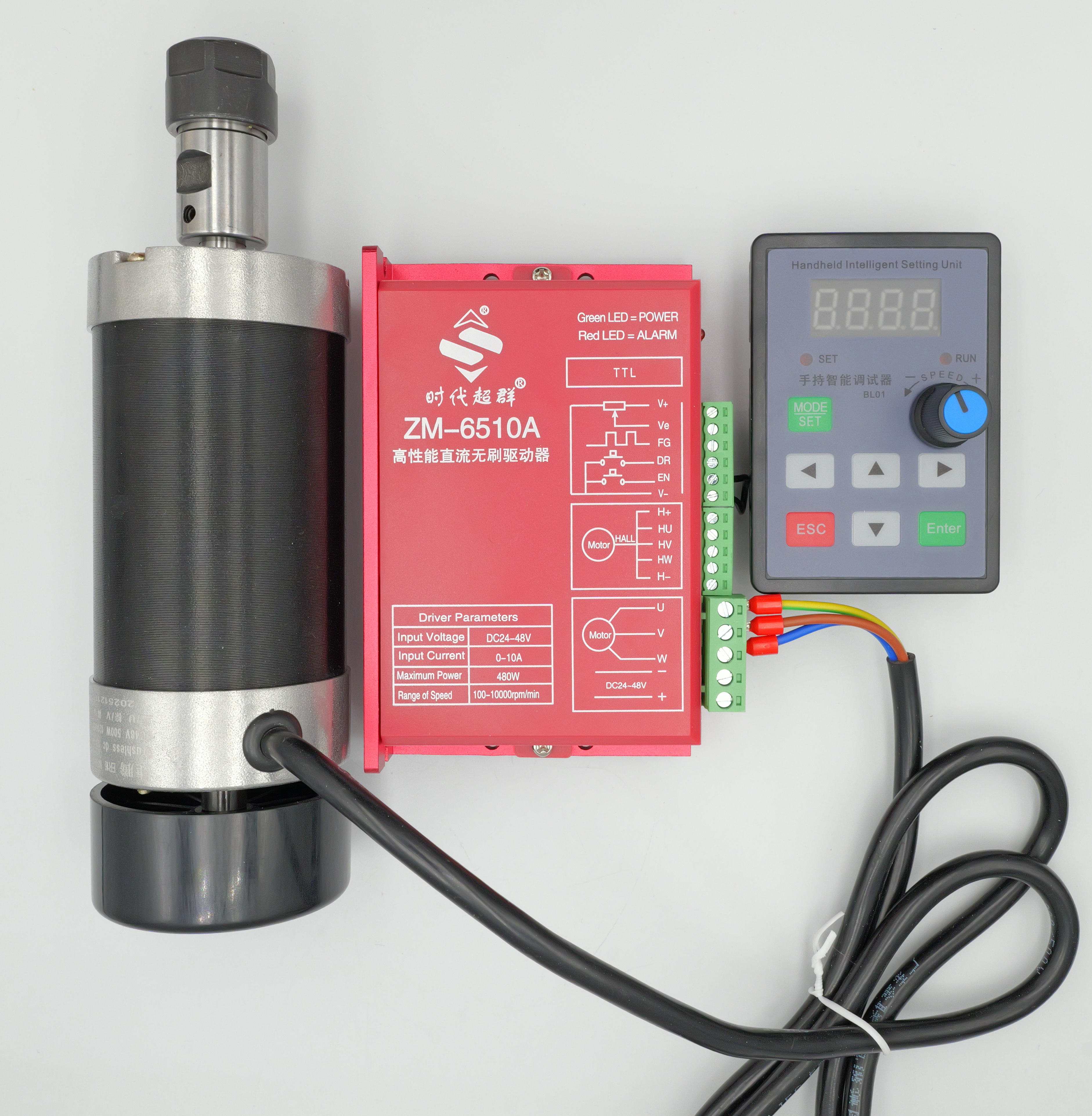 Elektrowrzeciono BLDC 0.5kW 48V 12000rpm ER16 + sterownik ZM-6510A